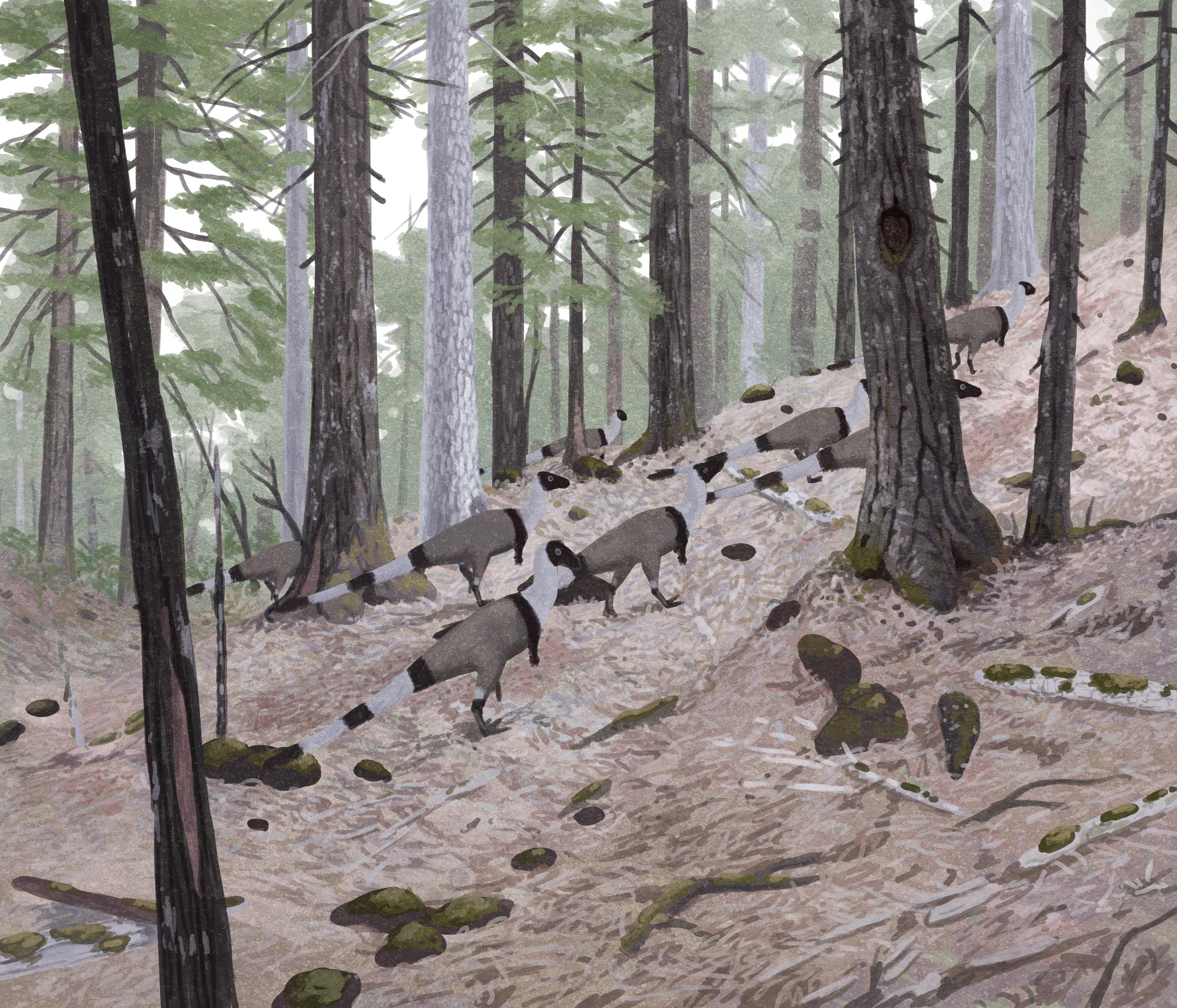 Some Parksosaurus in a forest in Late Cretaceous North America. They hope you can't see them.